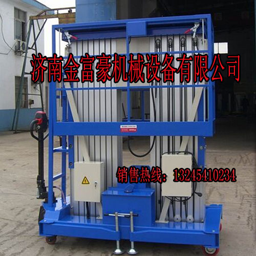 1、單組高強(qiáng)度鋁合金桅柱升降機(jī),整機(jī)重量輕,機(jī)動(dòng)性好,適合單人操作.