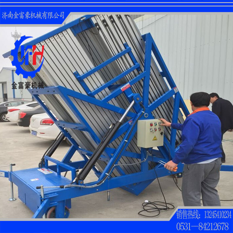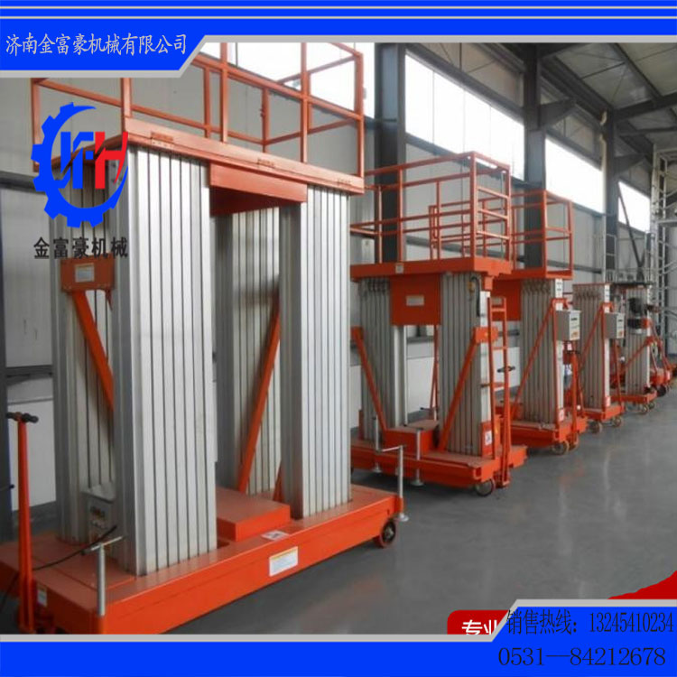 濟(jì)南金富豪升降機(jī)械設(shè)備有限公司是專業(yè)生產(chǎn)液壓升降平臺(tái)和物流搬運(yùn)設(shè)備的廠家之一,主營(yíng)剪叉式高空作業(yè)平臺(tái)、移動(dòng)式升降機(jī)、移動(dòng)式升降平臺(tái)、鋁合金式升降機(jī)、導(dǎo)軌式升降貨梯、汽車升降機(jī)、升降舞臺(tái)等等。本公司生產(chǎn)設(shè)備精良、工藝先進(jìn)合理、檢測(cè)手段齊全、技術(shù)力量雄厚,所有產(chǎn)品符合國(guó)家行業(yè)標(biāo)準(zhǔn),全部產(chǎn)品已經(jīng)通過(guò)國(guó)家特殊設(shè)備檢測(cè)站檢測(cè)。公司一直堅(jiān)持“以誠(chéng)為本,精益求精”的經(jīng)營(yíng)思想,非常注重團(tuán)隊(duì)建設(shè)及企業(yè)文化建設(shè),是山東省重合同,守信譽(yù)企業(yè)。歡迎廣大用戶來(lái)廠實(shí)地考察、洽談合作。