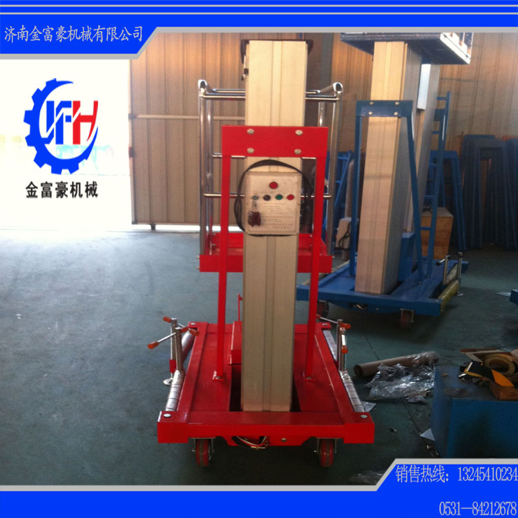 作時不傷 地面,可用于貼墻工作及探出作業(yè),工作無死角。單立柱式鋁合金電動升降機配上龍門跨架