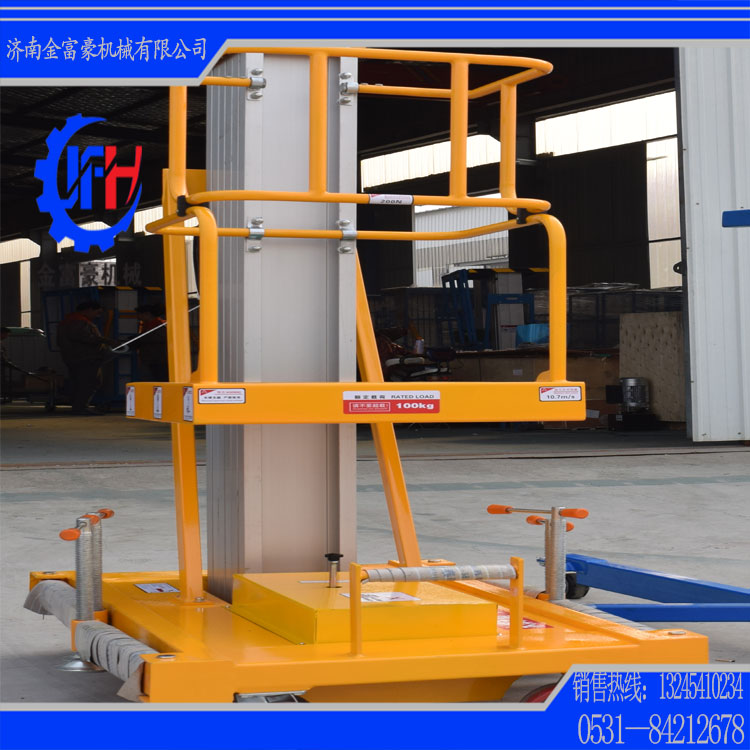 行程極限開關(guān)為了防止吊籠運行到頂層平層后,或底層平層后由于平層限位開關(guān)失效,吊籠繼續(xù)運行,需要設(shè)置上下極限保護開關(guān)。在頂層平層之上處設(shè)置上極限開關(guān),在底層平層之下處設(shè)置下極限開關(guān),開關(guān)位置還要保證在底坑緩沖器和井道頂部附加緩沖器被壓縮期間能夠保持開關(guān)動作狀態(tài)。在頂層或底層平層限位開關(guān)失效后,吊籠繼續(xù)運行上下極限開關(guān)動作,強行斷開動力電源防止發(fā)生過卷揚,吊籠沖頂,拉斷鋼絲繩,或蹲底事故。緩沖裝置緩沖器是作為液壓升降機最后一道保護裝置,起到在蹲底時的緩沖作用,減小對設(shè)備的損壞。在有條件時也應(yīng)在井道頂部安裝附加緩沖器,起到在沖頂時的緩沖作用。鋁合金升降機